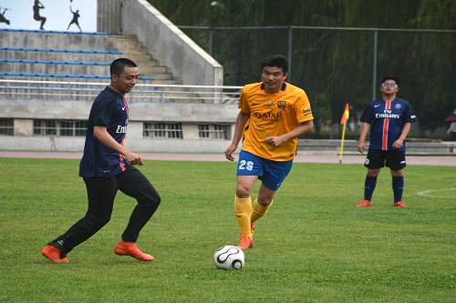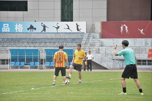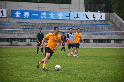 本次比赛是师生之间一场激情飞扬、活力四射的友谊赛,两支参赛队伍分别由热爱足球的老师和毕业生组成。绿茵场上,滚动的足球打破了双方之间三尺讲堂的距离,青草离离,深情依依。