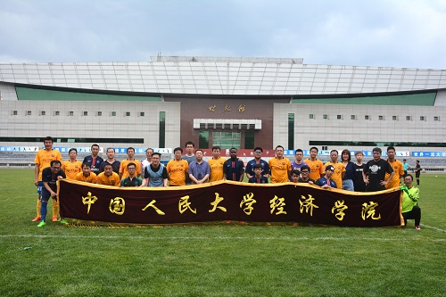 6月8日中午,毕业季经院师生足球友谊赛在学校田径场正式拉开帷幕。h视频 院长张宇教授到场观看比赛,为老师和同学们呐喊助威,研究生院副院长刘凤良教授、h视频 副院长王晋斌教授作为教师队队员参加比赛。