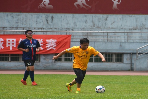 第三节开始,李军林老师在禁区内接队友传球低射入球门左下角,六比一。雷怀宇老师帮助教师队再下一城,七比一。面对教师队勇猛的攻势和巨大的比分领先优势,学生队毫不气馁,继续顽强拼搏,在比赛最后时刻王瀚林和留学生卡洛斯连续扳回两球。伴随着主裁判的一声哨响,比赛结束,场上比分定格在了七比三,教师队取得了比赛的胜利。
