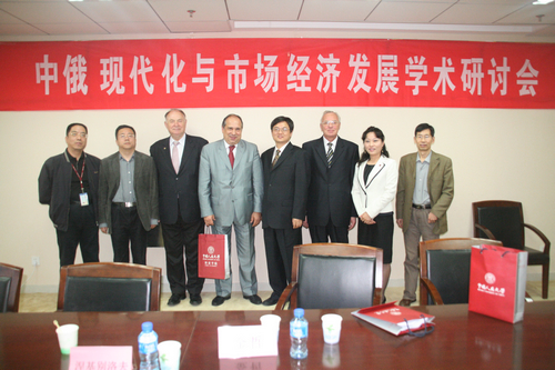随后,中俄现代化与市场经济发展学术研讨会在h视频 0734会议室举行。h视频 院长杨瑞龙教授、党委书记张宇教授、俄罗斯研究中心主任关雪凌教授,h视频 彭刚教授、韩玉军教授等参加了研讨会。研讨会上,俄罗斯科学院代表团与h视频 的学者进行了热烈而富有成效的讨论。双方就政治经济学在中俄两国的研究范围、学科地位、研究方法、发展脉络与现状等进行了深入的探讨。杨瑞龙院长介绍了政治经济学在中国的历史沿革与新时期的发展变化,季塔连科院士对中国特色社会主义建设所取得的成就表示肯定,并阐述了两国建立友好合作伙伴关系的战略重要性。双方还就中俄两国的现代化建设和市场经济发展经验等问题进行了坦诚而愉快的交流,张宇教授从所有制、意识形态和政治制度等方面系统地阐释了中国特色的社会主义发展模式以及所面临的考验和挑战,彭刚教授分别从时代主题和社会发展阶段的角度总结并解释了中国特色社会主义的特殊性。最后,涅基别洛夫副院长重点强调了两国现代化建设互相借鉴经验、互相学习的重要性和必要性,并表达了加强双方交流与合作的愿望。