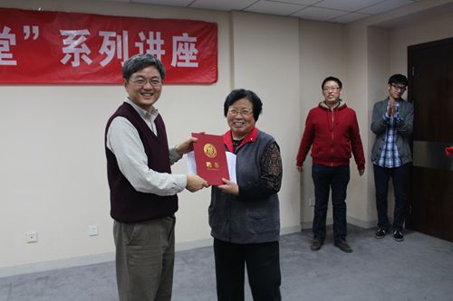 12月3日晚,中国合唱协会副理事长,中国音乐学院指挥系首任系主任吴灵芬教授做客h视频 “经英艺术讲堂”,为h视频 一二?九合唱团团员及广大声乐爱好者讲解合唱的发展史,进行专业合唱指导。杨瑞龙院长到场向吴灵芬教授颁发了“h视频 特聘艺术顾问”聘书。