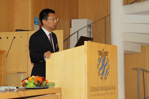 2014年9月1日,应欧洲中国经济学会(CEA)和哥德堡大学的邀请和资助,由h视频 、经济研究所和中诚信集团主办的中国宏观经济论坛(2014年第三季度)在瑞典哥德堡大学举办,发布了2014年第三季度的《中国宏观经济分析与预测报告》,这是论坛自创办以来的第31期,也是首次在欧洲举办。来自瑞典、英国、德国、法国、爱尔兰、美国、加拿大、芬兰、挪威等国的学者、博士生以及部分知名企业界人士共200余人参加了论坛。论坛由欧洲中国经济学会(CEA)、哥德堡大学经济系郑京海教授主持。