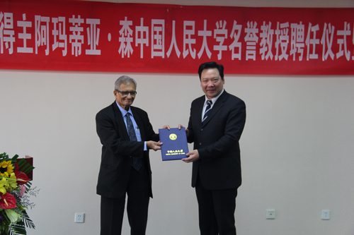 陈雨露校长为阿玛蒂亚·森教授颁发聘书