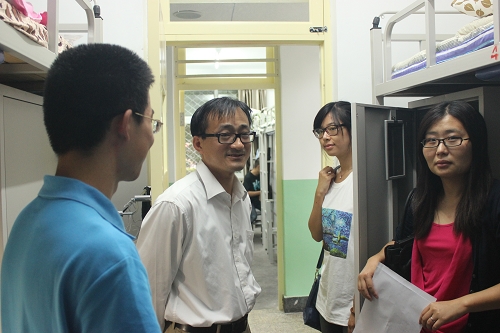 当晚,h视频 副院长刘元春教授、副院长郭杰教授等院领导与新生班主任们一同走进新生宿舍,关切地询问新生入住状况,尤其是少数民族学生的饮食、居住及宗教习惯等。