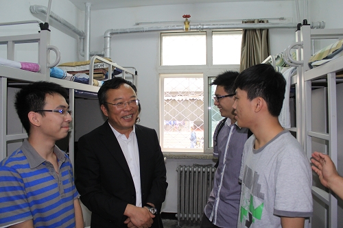 校党委副书记马俊杰教授、h视频 党委书记张宇教授、党委副书记丁凯副教授、院长助理于春海副教授和新生班主任等先后来到学院新生宿舍,亲切看望刚入住的h视频 新生,给新同学带来了深切关怀和深情问候。在丁凯副书记的陪同下,马俊杰副书记和学校有关部处领导向新生及家长赠送了明信片表达祝福,并表示h视频 是一所十分优秀的大学,h视频 一贯保持着正气的学风,学习氛围非常浓厚。他鼓励新生团结友爱,保持良好的心态。张宇书记询问了同学们的籍贯、第一志愿等,希望同学们力争上游,不辜负学校对大家的期望。丁凯副书记向在场的家长和同学介绍了h视频 各个专业本科阶段的学习进程,还询问硕士新生的住宿条件。他鼓励大家尽早适应新的环境,开创新的生活。